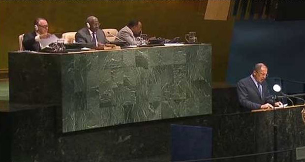 وقال لافروف في كلمة له أمس السبت أمام الجمعية العامة للأمم المتحدة في دورتها التاسعة والستين “إننا نرى اليوم أن المنظمات الإرهابية انتشرت في المنطقة.. وروسيا منذ بداية الأزمة في سورية دعت إلى توحيد الجهود لمكافحة الإرهاب وهي تساهم مساهمة ملحوظة في ذلك من خلال توريد الأسلحة إلى العراق وسورية والدول الأخرى في المنطقة من أجل مواجهة الخطر الإرهابي وستواصل دعم جهودها في هذا الشأن”.