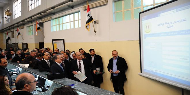 بدوره شرح معاون وزير العدل القاضي تيسير الصمادي آلية عمل الإصدار الإلكتروني للوكالات العدلية والذي أعدته الوزارة بالتعاون مع جامعة دمشق عبر أرشفة الوكالات القديمة وإصدار الحديث منها آليا بهدف حمايتها وبالتالي حماية حقوق المواطنين موضحا أن الوزارة نجحت في توثيق وارشفة نحو 8 ملايين وثيقة في العدليات السورية كافة ولا سيما أن الإصدار الآلي للوكالات يتم على ورق ذي مواصفات أمنية خاصة.
