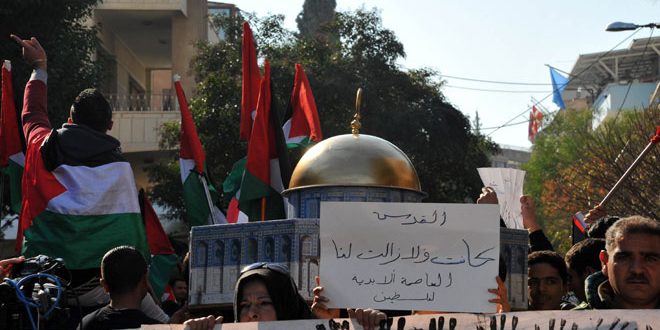 دمشق-سانا نفذت المنظمات الطلابية والشبابية الفلسطينية والسورية والعربية في سورية وقفة تضامنية بعنوان “لا شرقية …