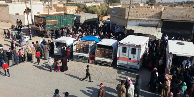 وزعت جمعية دير مار يعقوب المقطع اليوم مساعدات غذائية وطبية على أهالي 37 قرية وتجمعا سكنيا في ناحية دبسي عفنان بريف الرقة الغربي.