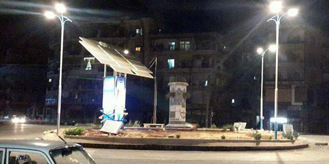 تواصل محافظة حلب تنفيذ مشاريع انارة الشوارع والمستديرات والانفاق والحدائق بالطاقة البديلة لتأمين الانارة العامة ولا سيما في الأحياء التي تعرضت فيها مكونات الشبكة الكهربائية لاضرار كبيرة نتيجة الاعتداءات الإرهابية.