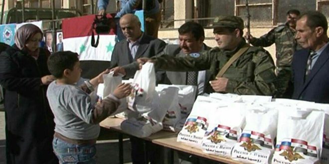 وأشارت مديرة الشؤءون الاجتماعية والعمل نبال الحريري إلى أن التوزيع اليوم استهدف ذوي الشهداء والمهجرين والأشد فقراً حيث تم توزيع سلتين غذائيتين فرديتين لكل أسرة معربة عن شكرها لروسيا لتقديمها الدعم والوقوف الى جانب سورية.