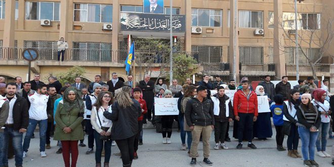 نظم الحزب السوري القومي الاجتماعي في مدينة الحسكة اليوم وقفة احتجاجية استنكارا لقرار الرئيس الأمريكي دونالد ترامب اعتبار القدس عاصمة لكيان الاحتلال الإسرائيلي الغاصب ونقل سفارة بلاده إليها.
