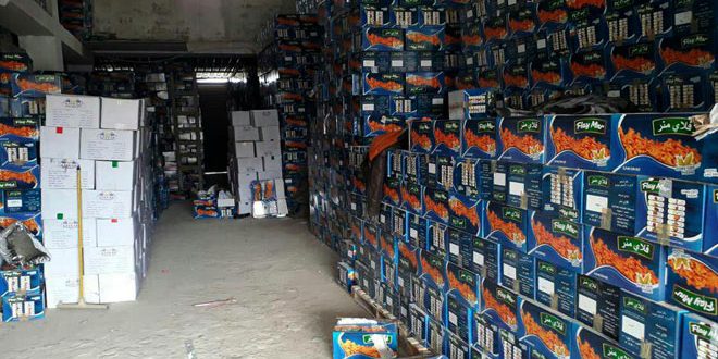 ضبطت مديرية التجارة الداخلية وحماية المستهلك باللاذقية اليوم مستودعا في المنطقة الصناعية يحوي كميات كبيرة من المواد الغذائية المخالفة والمهربة من تركيا.