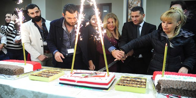 أقامت “مؤسسة العيطة لدعم أسر الشهداء وذوي الاحتياجات الخاصة” مساء اليوم بازارا خيريا تحت عنوان “ميلادك سورية” وحفل تكريم لأسر شهداء وجرحى الجيش العربي السوري بمناسبة عيد الميلاد المجيد وذلك في كنيسة القديس كيرلس بالقصاع في دمشق.