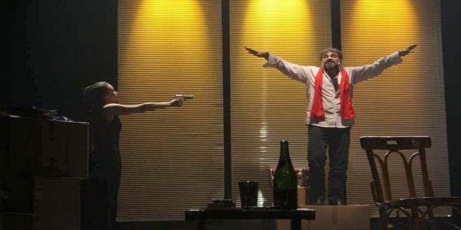 وتروي مسرحية تصحيح ألوان التي قدمت في أيار الماضي على مسرح القباني حكاية الصحفية رشا التي تجري حواراً مع الروائي جابر إبراهيم حيث يقود الحوار إلى تكشف ماضي الشخصيتين عبر مواجهة لا تلبث أن تنتج صراعاً تراجيدياً ينبش في واقع “النخب المزيفة” وذلك في لعبة مسرحية شيقة ولاهثة ذات إيقاع متواتر تتداعى معه الشخصيات فتكشف عن أقنعتها.