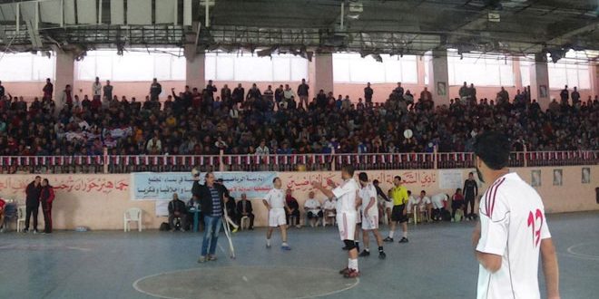 أطلق لاعب الكاراتيه وأحد عناصر فوج إطفاء درعا رامي عيسى المرجي رمية البداية في المباراة الودية التي جمعت اليوم فريقي الجيش والشعلة بكرة اليد على أرض الصالة الرياضية المغلقة بدرعا.