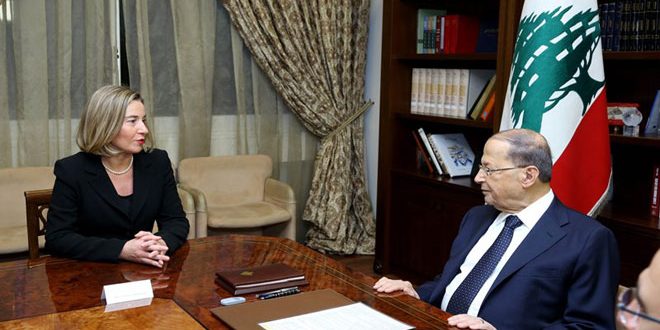 من جانبها أعربت موغيريني عن استمرار دول الاتحاد الأوروبي بتقديم الدعم للبنان في المجالات كافة ولا سيما في موضوع المهجرين السوريين.