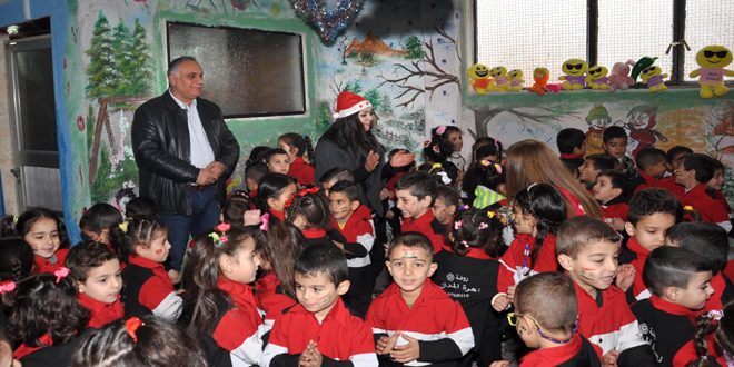 بمناسبة أعياد الميلاد والعام الجديد أقامت روضة زهرة المدائن بحمص اليوم بالتعاون مع المحافظة حفلا تكريميا لأطفال ذوي الشهداء.