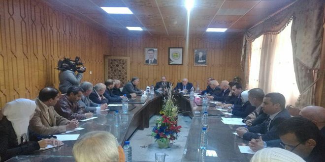 بحث محافظ درعا محمد خالد الهنوس مع المعنيين بتنفيذ الامتحانات في فرع جامعة دمشق بالمحافظة سبل انجاح العملية الامتحانية للفصل الدراسي الأول.