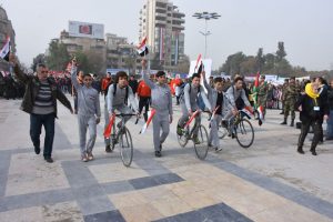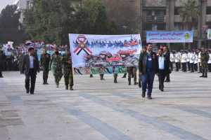بمناسبة مرور عام لانتصارها على الإرهاب أقيم في مدينة حلب اليوم احتفال جماهيري في ساحة سعد الله الجابرى وذلك بمشاركة فعاليات رسمية وأهلية وذوي الشهداء.