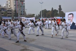 وتضمن الاحتفال استعراضا شاركت فيه تشكيلات عسكرية إلى جانب مشاركات من فوج كشاف حلب وعروضا رياضية للاعبين من فرع الاتحاد الرياضي العام وأخرى فنية لأطفال من فرع طلائع البعث.