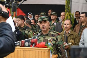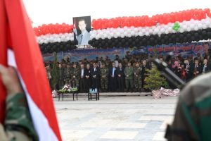 وقال “معركتنا مستمرة ضد الإرهاب حيث نحمل السلاح بيد وباليد الأخرى نبني الوطن ولن نهدأ أو نستكين حتى نكمل تطهير أرض سورية من رجسه ونعيدها أجمل وأبهى مما كانت عليه”.