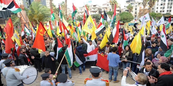 كما أكد المشاركون في “المسيرة الشعبية الكبرى” في قطنا بريف دمشق احتجاجا على قرار الرئيس الأمريكي دونالد ترامب تجاه القدس أن هذه الخطوة دليل على استمرار دعم واشنطن لجرائم الاحتلال الإسرائيلي واستهتارها بكل القيم والقوانين الدولية.