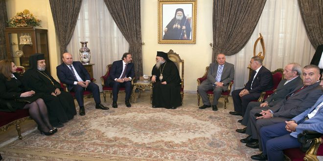 وزار الوزير عزام بطريركية الروم الكاثوليك وقدم الى البطريرك يوسف العبسي بطريرك انطاكية وسائر المشرق للروم الملكيين الكاثوليك تهاني الرئيس الأسد لأبناء الطائفة الكريمة بهذه المناسبة المجيدة.