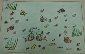 الفئة العمرية بين 9 و12عاما لم تكن مشاركتها أقل قيمة عن سابقاتها حيث عبرت الطالبة الفائزة كارني مانجيان في لوحتها عن أهمية استخدام مصادر الطاقة النظيفة كبديل للطاقة الأحفورية التي تزيد انبعاث الغازات المسببة للاحتباس الحراري والتغير المناخي واستنزاف الموارد المحدودة في الأرض.