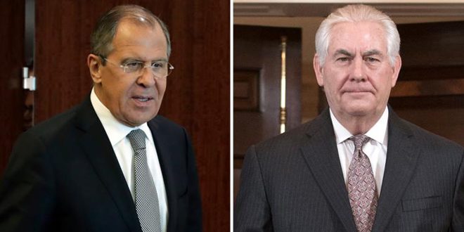 بحث وزير الخارجية الروسي سيرغي لافروف ونظيره الأمريكي ريكس تيلرسون خلال اتصال هاتفي اليوم الوضع في سورية والتحضيرات لعقد مؤتمر الحوار الوطني السوري في مدينة سوتشي يومي الـ 29 وال 30 من كانون الثاني القادم.