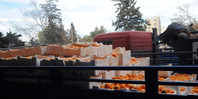 تسلمت السورية للتجارة صباح اليوم نحو 200 طن من الحمضيات مقدمة إلى أسر الشهداء في محافظة دمشق.