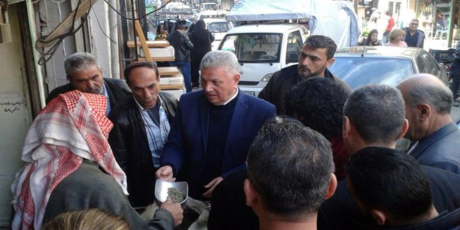 ودعا المحافظ خلال الجولة التي شملت العديد من محال بيع المواد الغذائية واللحوم والفروج والحلويات والألبسة والأحذية والمطاعم و العصرونية إلى ضرورة الالتزام بالشروط الصحية بالنسبة للمواد الغذائية والحرص على السلامة العامة وتوفير المواد الأساسية بأسعار مناسبة والتقيد بهامش الربح المحدد.