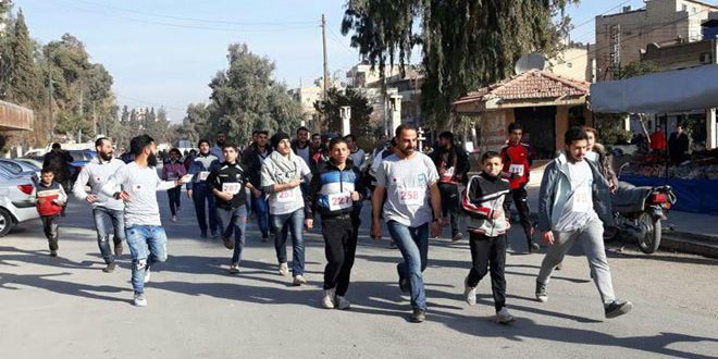 نظم مشروع مقاهي الحوار للشباب الذي ينفذه برنامج الأمم المتحدة الإنمائي وجمعية البر والخدمات الاجتماعية مبادرة ماراثون السلام الرياضي في شوارع مدينة الحسكة.