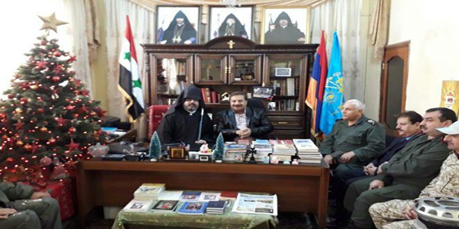 وخلال لقائه مطران الأرمن الكاثوليك في الجزيرة والفرات انترانيك ايوازيان ومطران الأرمن الأرثوذكس روبين نلبنديان نوه المحافظ بدور رجال الدين المسيحي والإسلامي خلال السنوات الماضية من الأزمة في دحض الأفكار التكفيرية التي جاء بها الإرهاب الحاقد وحثهم للناس على التشبث بالأرض وحب الوطن.