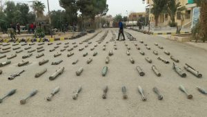 وسبق لوحدات الجيش أن عثرت داخل أوكار إرهابيي داعش في مدن دير الزور والميادين والبوكمال وغيرها من المناطق التي اعاد اليها الجيش الأمن على كميات كبيرة من الأسلحة الرشاشة والذخيرة والمدافع بعضها إسرائيلي وأمريكي الصنع والمواد السامة والأقنعة الواقية إضافة إلى مئات القذائف المتنوعة وذخائر وأسلحة أخرى من صنع حلف الناتو وعدة دول.
