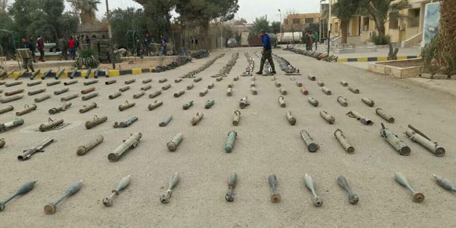 العثور على كميات من الأسلحة والذخائر بعضها أمريكي الصنع من مخلفات إرهابيي داعش في دير الزور