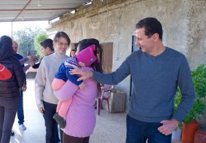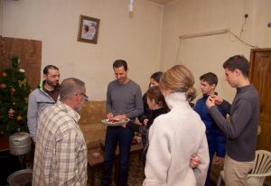 واختتم الرئيس الأسد وعائلته جولتهم اليوم في حمص وريفها بزيارة الجريح زخور سليط في محله التجاري الذي أسسه ويعمل به حاليا في قرية المشتاية للاطمئنان على حالته ومعايدته بمناسبة عيد الميلاد وبداية العام الجديد.