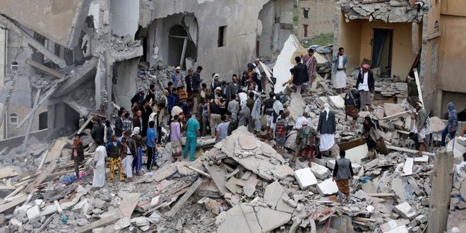 وكان العشرات من اليمنيين سقطوا اليوم بين قتيل وجريح جراء غارات جديدة شنها طيران النظام السعودي على عدد من المناطق اليمنية من بينهم عشر نساء قتلن فى غارات على مزرعة بمديرية الخوخة في محافظة الحديدة.