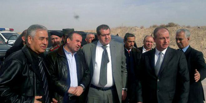 تفقد وزراء الادارة المحلية والبيئة والتعليم العالي والنفط والثروة المعدنية اليوم واقع العمل في التحويلة الطرقية عند جسر عياش والخدمات في بلدة الشميطية بريف دير الزور الغربي.