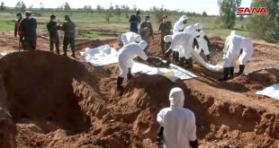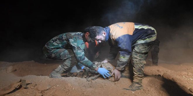 انتهت اليوم عملية إخراج جثامين الشهداء المدنيين والعسكريين من إحدى المقبرتين الجماعيتين بريف الرقة ممن أقدم تنظيم داعش الإرهابي على إعدامهم خلال سيطرته على المنطقة.