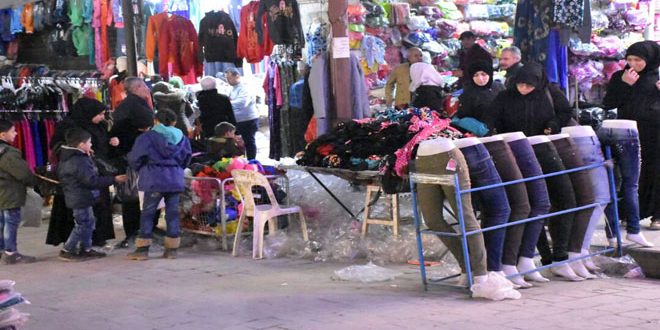 عاشت حلب اليوم مظاهر بهجة وفرح ونشاط افتقدتها لسنوات طويلة بسبب الارهاب وبينما يستعد اهلها اليوم لوداع عام 2017 واستقبال عام 2018 تعيش أسواقها حركة تجارية متميزة حيث شهدت الاسواق اقبالا من المواطنين على التسوق وشراء احتياجاتهم المختلفة بهذه المناسبة.