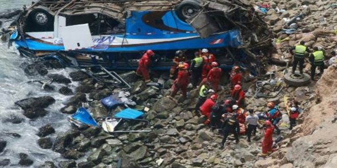 وأوضحت الشرطة أن الحادث وقع عند منعطف الشيطان الذي يرتفع حوالي 100 متر عن سطح المحيط الهادئ على بعد حوالي 45 كيلومترا شمال العاصمة ليما.