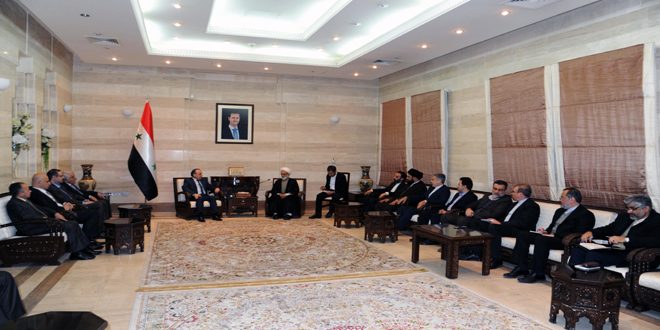 أكد رئيس مجلس الوزراء المهندس عماد خميس خلال لقائه الوفد البرلماني الإيراني الذي يزور سورية برئاسة أحمد سالك نائب رئيس جمعية الصداقة البرلمانية السورية الإيرانية ضرورة العمل على تعزيز العلاقات الثنائية بين سورية وإيران والارتقاء بها بما يحقق المصالح المشتركة للبلدين.