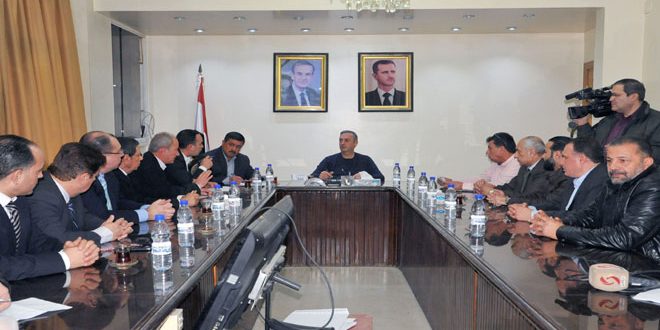 2018-01-04 اجتماع محافظ ريف دمشق مع عدد من الفعاليات في منطقة فضلون الصناعية بالسبينة 2018-01-04mohamad
