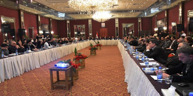 وشدد المشاركون على ضرورة تطوير البنية التنموية الشاملة لكل مكونات الحياة في محافظة حلب ووضع رؤى جديدة وخريطة عمل قابلة للتنفيذ واعادة تشغيل المنشآت الخاصة والعامة في المحافظة بما يتوافق مع منتجاتها المحلية وكوادرها البشرية وحجمها كمحافظة تملك مقومات الانتاج وسبل تحقيق ذلك ونوه المشاركون بالجهود الحكومية المبذولة لتحسين الواقع الخدمي والتنموي في محافظة حلب بعدما تمكن الجيش العربي السوري من إعادة الأمن والاستقرار إليها مشيرين في الوقت ذاته إلى تضرر البنى الاقتصادية في سورية جراء الحرب عليها.