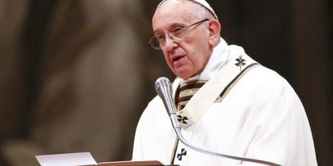ونقلت (ا ف ب) عن البابا فرنسيس قوله أمام الدبلوماسيين المعتمدين لدى الكرسي الرسولي اليوم: إنه “من المهم أن نتمكن من متابعة مختلف مبادرات السلام الجارية لمصلحة سورية في مناخ بناء من الثقة المتزايدة بين الأطراف” مشيرا إلى أن الحرب الإرهابية على سورية المستمرة منذ أكثر من ست سنوات “أثرت على البلاد وتسببت بمعاناة مروعة” داعيا إلى ضرورة تمكين المهجرين السوريين من العودة إلى وطنهم.