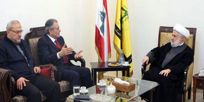 بحث السفير السوري في لبنان علي عبد الكريم مع نائب الأمين العام لحزب الله الشيخ نعيم قاسم اليوم الاوضاع في المنطقة واخر المستجدات على الساحتين الإقليمية والدولية.
