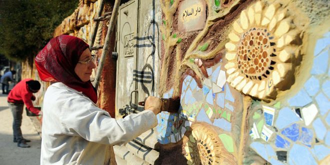 طرطوس-سانا زينت مدخل طرطوس الجنوبي لوحات جدارية فنية مستوحاة من صور فوتوغرافية لمختلف أرجاء المحافظة …