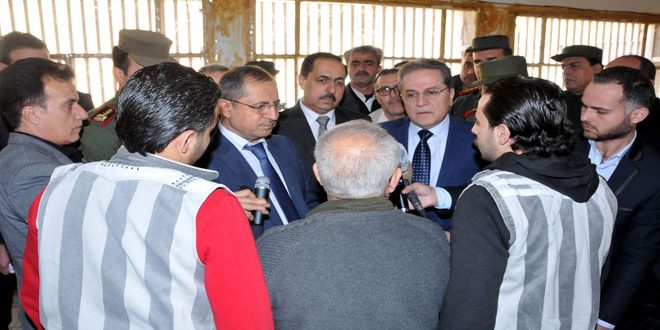 اطلع اللواء محمد الشعار وزير الداخلية والقاضي هشام الشعار وزير العدل خلال جولتهما اليوم على سجن دمشق المركزي على أحوال السجناء والخدمات المقدمة لهم واستمع الوزيران الى هموم ومطالب السجناء من أجل معالجتها.