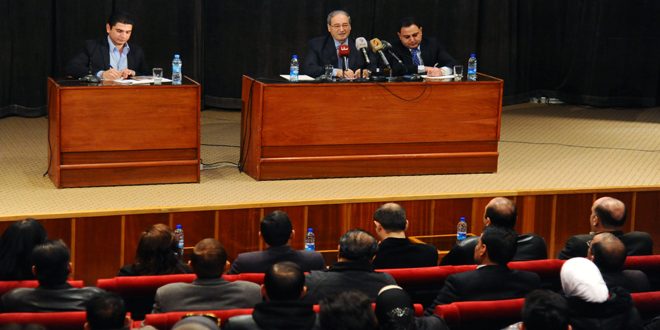 وقدم الدكتور المقداد عرضاً عن الحرب الإرهابية التي شنتها قوى العدوان ضد سورية وآخر التطورات السياسية حيث شدد على أن سورية لم تقبل في ذروة الحرب الإرهابية التي تعرضت لها أي عرض ينال من سيادتها ووحدة أرضها وشعبها “ولن تقبل بأي حل يرفضه الشعب السوري”.