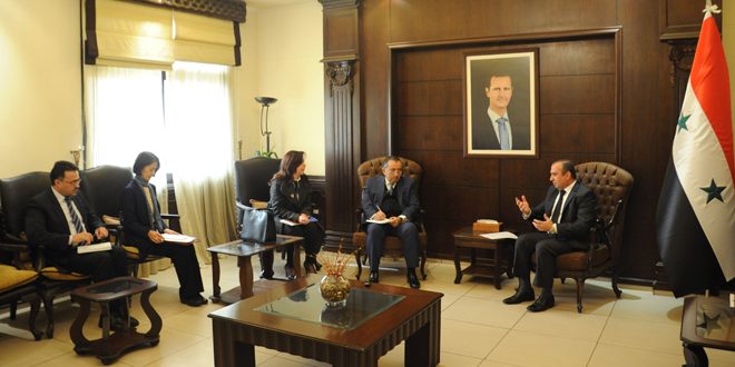 بحث وزير الإدارة المحلية والبيئة المهندس حسين مخلوف مع المدير القطري لبرنامج الأمم المتحدة الإنمائي في سورية ديفيد آكوبيان امكانية توسيع مجالات التعاون بين الحكومة السورية والبرنامج لتشمل قطاعات أكبر تتناسب ومتطلبات الظروف الحالية.