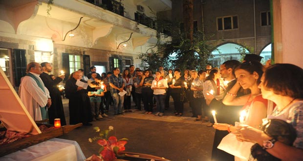 أقيمت في دير الآباء اللعازريين في باب توما بدمشق اليوم صلاة لأجل السلام فى سورية تحت عنوان “كنيسة دمشق الصائمة والمصلية لأجل سلام سورية” ترأسها الأب خليل عرار بمشاركة ممثلي الطوائف المسيحية بدمشق.