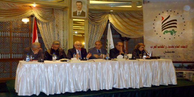 تطرقت الندوة الفكرية التي بدأت أمس ضمن فعاليات اجتماع اتحاد الأدباء والكتاب العرب لمحاور متنوعة شملت دور الشباب في المشروع النهضوي العربي وسعي الغرب والصهيونية لنشر أفكار تقسيمية لجسد الأمة تقف بوجه أي فكر توحيدي وتنويري.