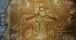 وأوضح فرزات أن أعمال الفريق الفني والأثري المكلف بالتنقيب في الموقع والمستمرة منذ عشرة أيام كشفت أساسا لبناء كنيسة مهمة في المنطقة آنذاك إضافة إلى اكتشاف 3 لوحات فسيفساء بمناسيب مختلفة مشيرا إلى أن اللوحة الاولى مرسوم عليها شكل طائر حجل وترجع للفترة البيزنطية في القرن الخامس الميلادي وهي مستطيلة الشكل ويبلغ طولها 8 أمتار وعرضها 7 أمتار تنتهي بشكل نصف دائري وهي تشكل انحناء نصف مستدير يتوسط الجدار الشرقي للكنيسة التي لم يتبق منها سوى الأرضية الفسيفسائية نتيجة تعرضها للتخريب في عدة مواضع جراء أعمال البناء التي كانت مبنية فوقها منذ نحو 40 عاما فضلا عن التعدي عليها من قبل تنظيم “داعش” الإرهابي.