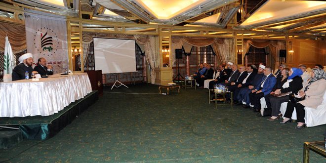 وتوجه سماحة المفتي في ختام حديثه بالشكر لأعضاء الوفود المشاركة من باحثين وشعراء من مختلف الدول العربية لحضورهم اجتماع اتحادهم في دمشق وقال “بمشاركتكم هذه كسرتم وتحديتم تلك القيود التي أراد أعداء سورية والعروبة والإسلام نشرها حولنا ليمنعونا من قول الحق وفضح هذه المؤامرة وتحذير اخوتنا منها ومن تبعاتها”.