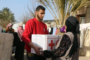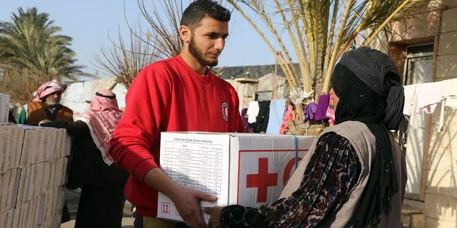 وزعت منظمة الهلال الاحمر العربي السوري مساعدات إغاثية على المقيمين في مراكز الإقامة المؤءقتة في ريف دير الزور الشرقي.