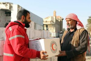 وتحرص الحكومة السورية على إيصال المساعدات إلى المواطنين في مختلف المناطق إضافة إلى تقديم جميع التسهيلات لضمان وصول المساعدات التي يقوم الهلال الأحمر العربي السوري بالإشراف على إيصالها لجميع المتضررين من جرائم التنظيمات الإرهابية.