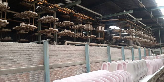 كما لفت المحمد إلى أن إنتاج معمل الادوات الصحية يتراوح يوميا بين 25 و 29 قطعة مشيرا الى سعي الشركة الدائم لتحسين النوع والكم بدءا بإنتاج أطقم وقطع جديدة وتشغيل فرن الزخرفة وانتاج القطع المزخرفة بمعدل 80 قطعة يوميا.