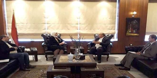بحثت وزيرة الشؤون الاجتماعية والعمل ريمه قادري اليوم مع السفير اللبناني في سورية سعد زخيا علاقات التعاون بين البلدين الشقيقين ولا سيما المواضيع المتعلقة بالشأن الاجتماعي ووضع السوريين في لبنان وواقع العمال منهم.